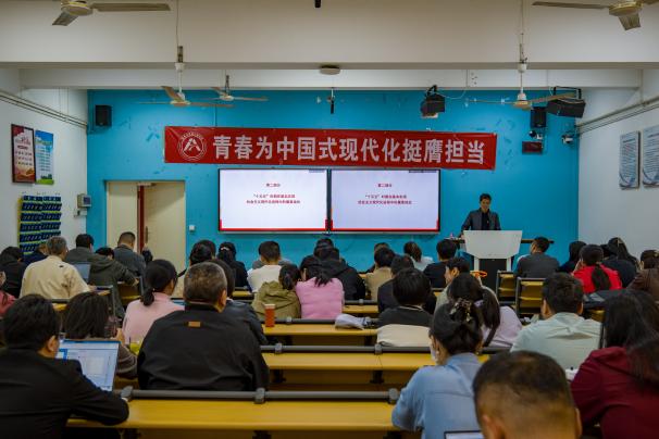 ??為深入學習貫徹黨的二十屆四中全會精神,引導廣大黨員教師深刻領(lǐng)會、準確把握核心要義與實踐要求,12月3日,信息與智慧交通學院舉辦“學習貫徹黨的二十屆四中全會精神”專題講座,由我院黨總支書記許友孝主講,全體教職工黨員參加學習。