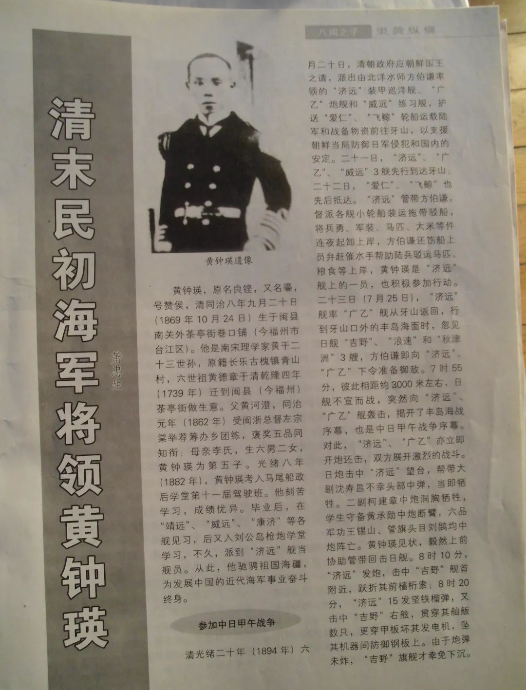 叔祖黃鐘瑛系民國第一任海軍總長兼海軍總司令、上將