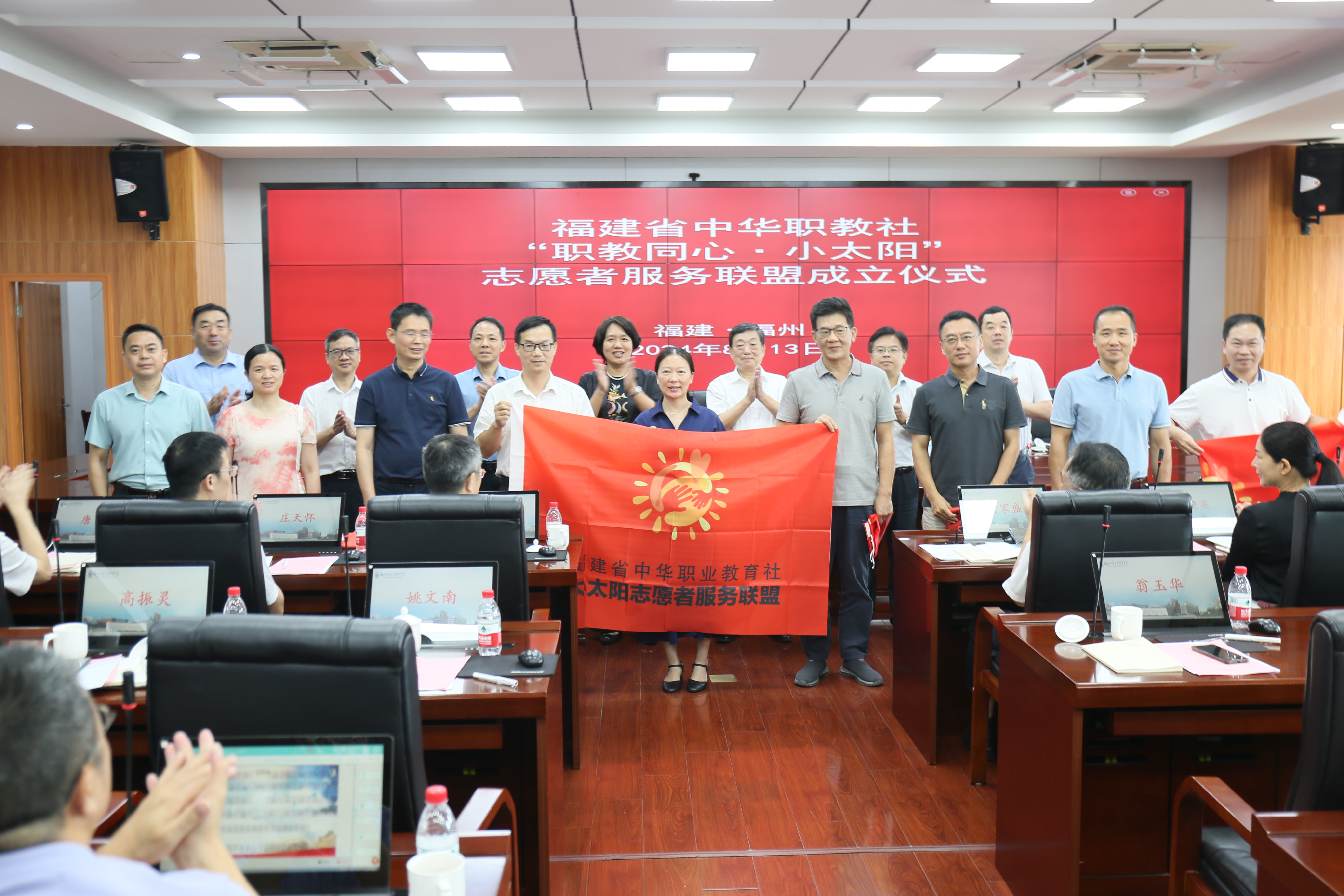 隨后,福建省中華職業(yè)教育社第九屆社務(wù)委員會(huì)第二次全體(擴(kuò)大)會(huì)議召開。會(huì)上,福建省委統(tǒng)戰(zhàn)部部務(wù)會(huì)議成員、福建省中華職業(yè)教育社黨組書記黃玲傳達(dá)黨的二十屆三中全會(huì)精神。全國(guó)政協(xié)委員、福建省中華職業(yè)教育社主任吳志明通報(bào)年度工作。福建省中華職業(yè)教育社黨組成員、專職副主任游理忠宣讀“職教同行·小太陽(yáng)”志愿者服務(wù)倡議書,有關(guān)人員解讀“職教同行·小太陽(yáng)”標(biāo)識(shí),各設(shè)區(qū)市中華職業(yè)教育社領(lǐng)導(dǎo)受旗,“職教同行·小太陽(yáng)”志愿者服務(wù)聯(lián)盟宣告成立。