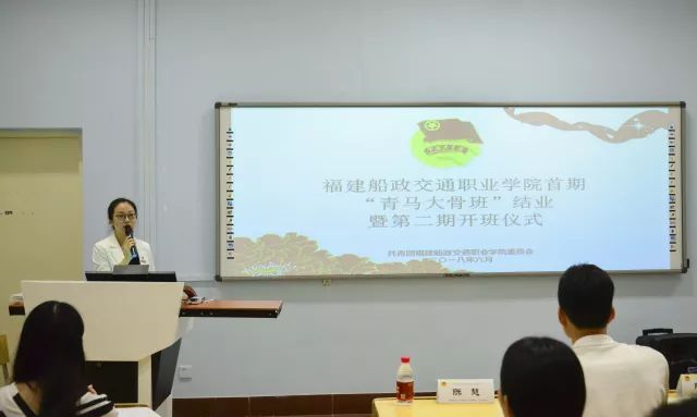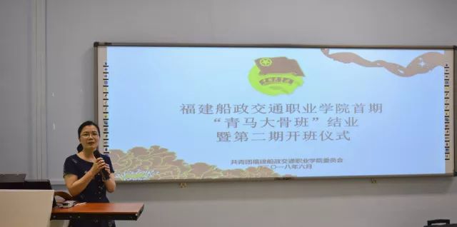 陳艷紅副院長在開班儀式致辭,她說:”青馬大骨班“的學(xué)員,不僅是團學(xué)干部,更是學(xué)院優(yōu)秀學(xué)子的典型代表。"青馬工程"的首要任務(wù),就是培養(yǎng)具有堅定馬克思主義理想信念的青年學(xué)生,充分發(fā)揮團員青年在學(xué)院建設(shè)發(fā)展中的生力軍和突擊隊作用。她希望第二期青馬大骨班的同學(xué)向首期優(yōu)秀學(xué)員學(xué)習(xí),在繼承中創(chuàng)新,并對第二期青馬大骨班學(xué)員提出了三點要求: