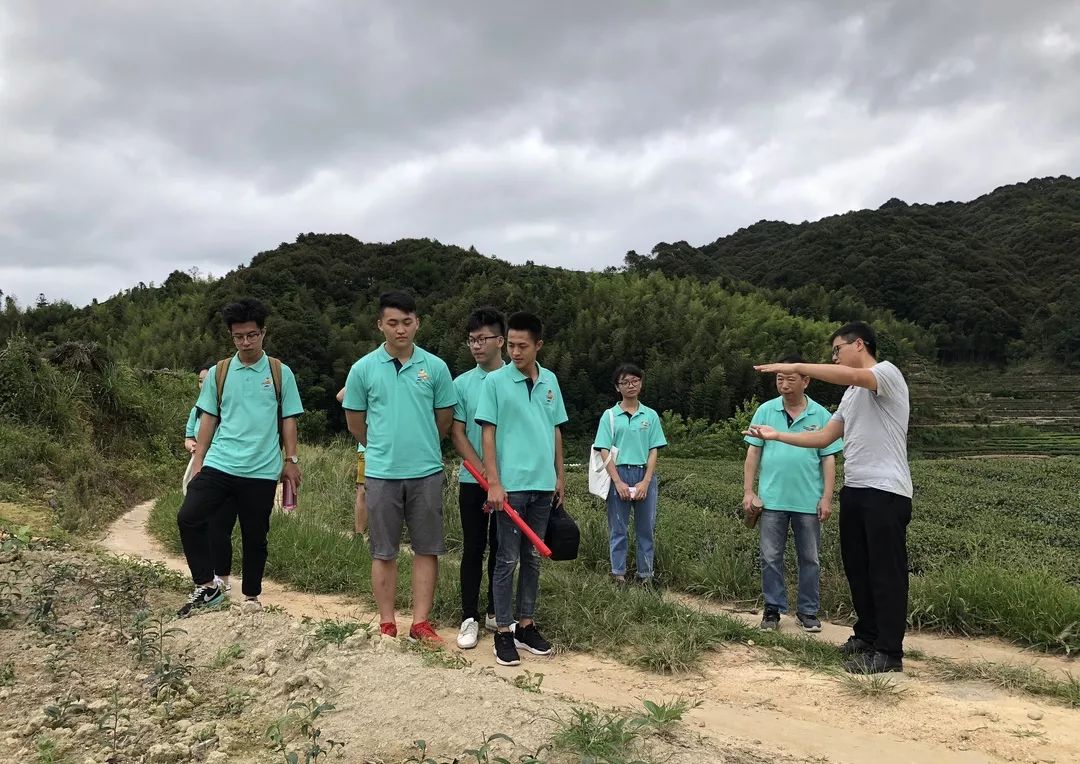 實踐隊一行人在村書記的帶領之下前往金竹村茶園進行實地考察。