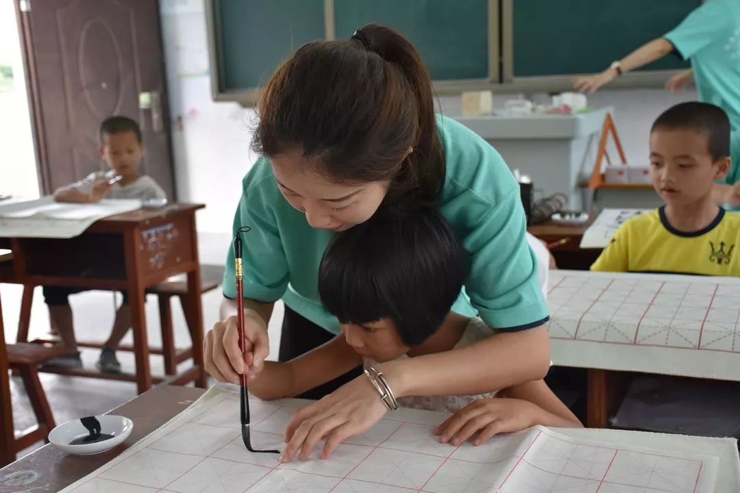實踐隊隊員給當?shù)氐膶W生講授書法的基礎知識,并進行現(xiàn)場教學。管理工程系林祥庚書記和隊員們對他們進行了細致的講授。當?shù)氐膶W生都是第一次接觸書法,表現(xiàn)出了極大的興趣,專心致志的學習。