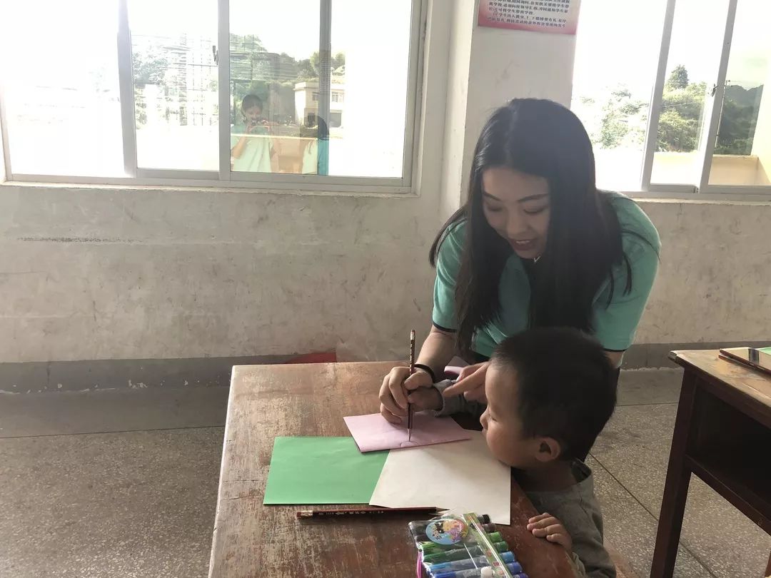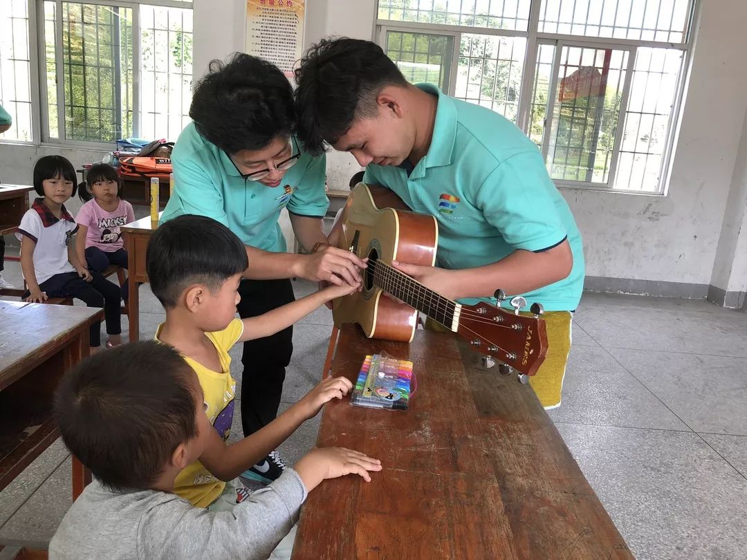 實踐隊隊員和當?shù)氐膶W生一起學習古詩詞,為他們講解詩詞的意義,并以樂器彈唱的方式進行演繹——這是現(xiàn)代音樂與古代詞句的一次美麗的邂逅,讓大家再次感受到有著數(shù)千年歷史的詩歌的韻味和煥發(fā)出的新的活力。同時實踐隊隊員還帶來了美工課程。一把剪刀、一張紙、一個構(gòu)想,完成屬于自己的一份作品。