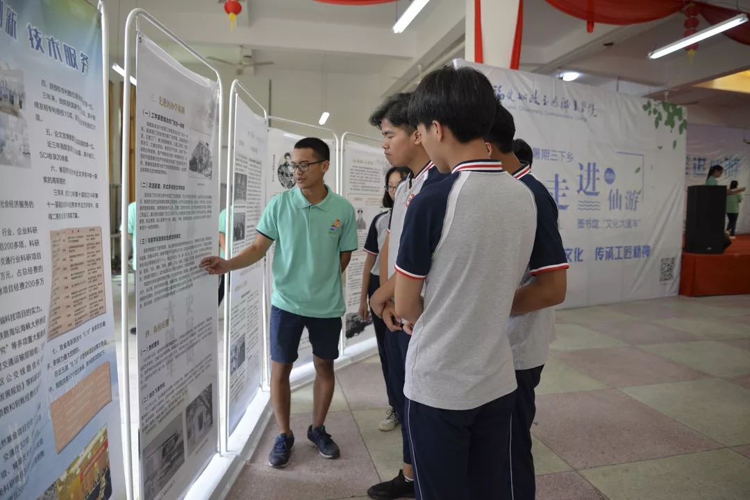 7月8日,服務(wù)團成員走進仙游華僑中學(xué),仙游華僑中學(xué)坐落在仙游縣著名僑鄉(xiāng)——賴店鎮(zhèn),是一所省一級達標(biāo)學(xué)校和省級實施素質(zhì)教育工作先進學(xué)校、精神文明工作先進學(xué)校。歷年來,該中學(xué)每年高考均有大量學(xué)生報考我院。服務(wù)團成員們在華僑中學(xué)的課堂上,用生動的船政歷史和人物故事,向華僑中學(xué)的同學(xué)介紹船政文化。還向同學(xué)們介紹我院基本情況及近年學(xué)院招生、就業(yè)情況。同時,利用課間休息時間,對同學(xué)進行課業(yè)輔導(dǎo),教育幫扶。