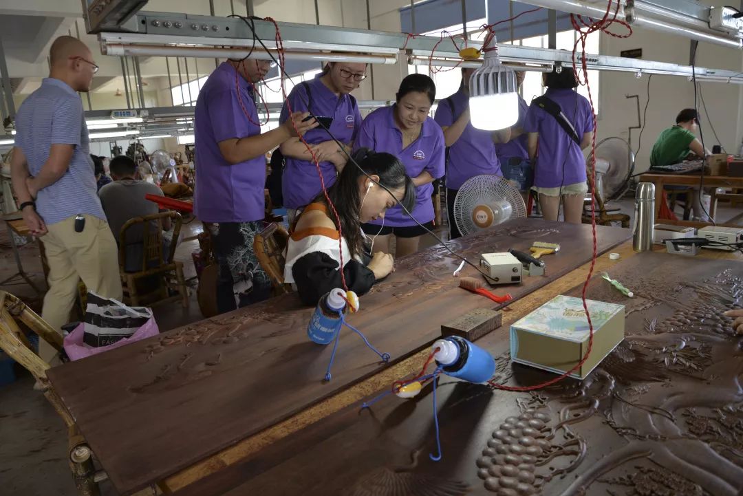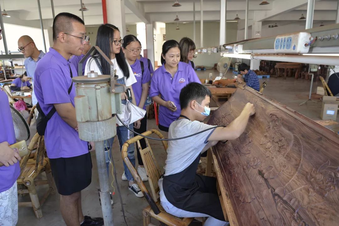 7月9日,服務(wù)團走進仙游縣皇冠古典家具有限公司,該公司主營古典家具 , 木雕工藝品生產(chǎn)以及銷售。成員們參觀了該企業(yè)的展廳,了解各種木雕工藝品以及家具的情況,并且走進了該公司的生產(chǎn)車間,開展真人圖書分享,與生產(chǎn)車間木雕工匠面對面近距離接觸,與木雕工藝師傅交流傳承傳統(tǒng)技能心得。