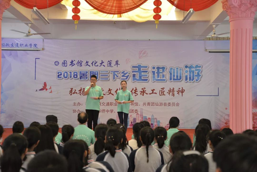 7月6日下午,福建船政交通職業(yè)學(xué)院圖書館“教育關(guān)愛服務(wù)團”2018年暑期“三下鄉(xiāng)”實踐活動,在莆田仙游華僑中學(xué)正式拉開了帷幕。華僑中學(xué)200余名學(xué)生,及當(dāng)?shù)亓羰貎和煌瑓⒓印?/p>