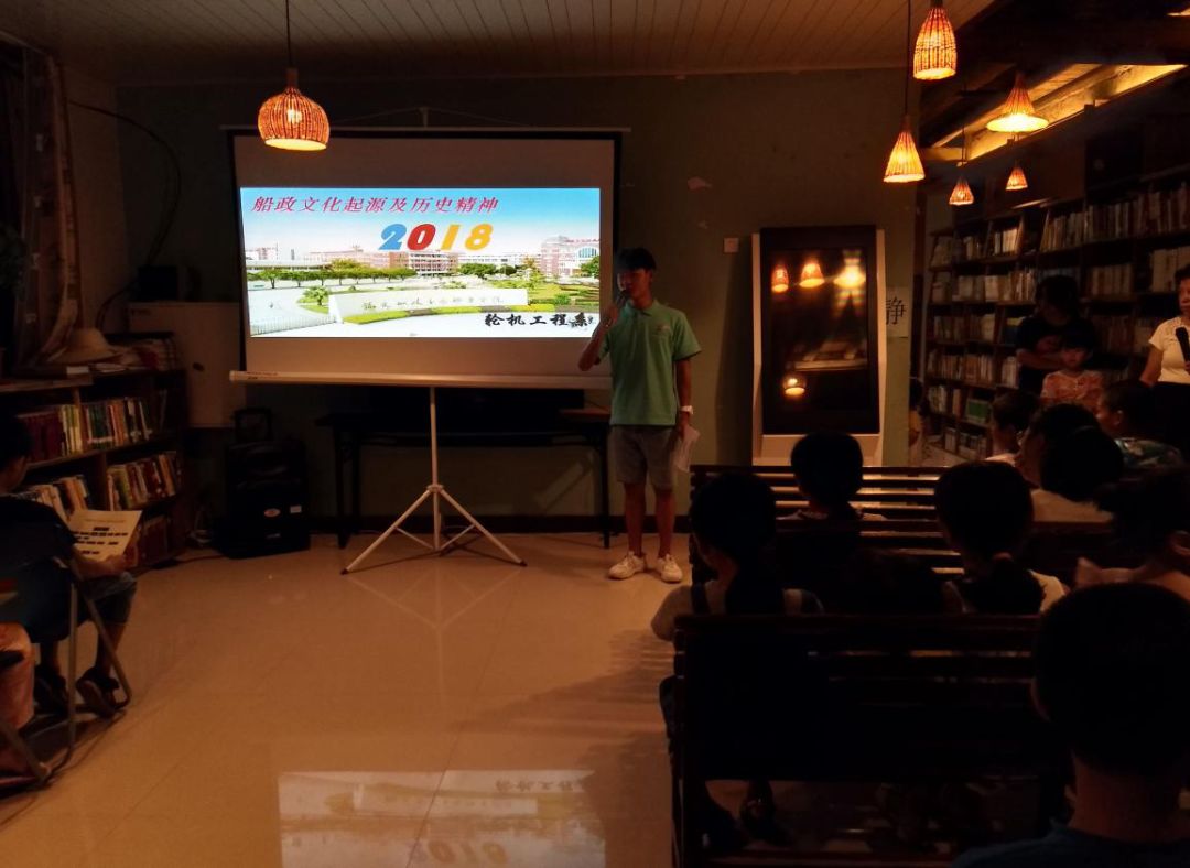 上午的走訪(fǎng)結(jié)束,簡(jiǎn)單的午憩之后,下午我們便展開(kāi)了以弘揚(yáng)“船政精神”為主題的專(zhuān)題活動(dòng);在嚴(yán)老師的幫助下,召集了古鎮(zhèn)當(dāng)?shù)氐木用?,開(kāi)展一堂別具特色的主題講座。