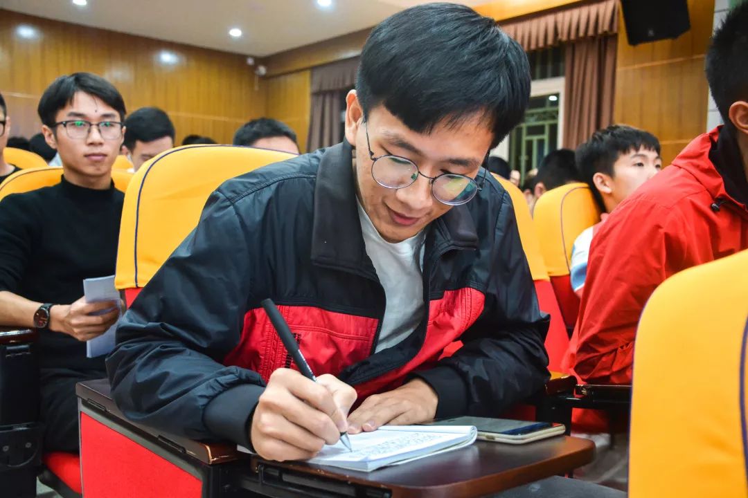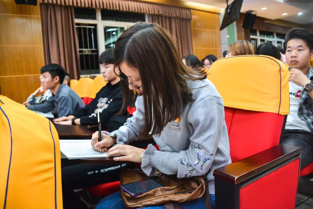 10月21日晚,校團委學(xué)生第一副書記龔鎮(zhèn)同學(xué)與學(xué)員們分享了他擔(dān)任學(xué)生干部以來的學(xué)習(xí)經(jīng)驗。并解答了同學(xué)們提出的在工作中遇見的問題。他作為“團省十四大”的代表,為大家解讀了“團十八大“、”團省十四大”工作報告精神的解讀,鼓勵學(xué)員們在新時代勇?lián)笕危龀鲂伦鳛椤?/p>