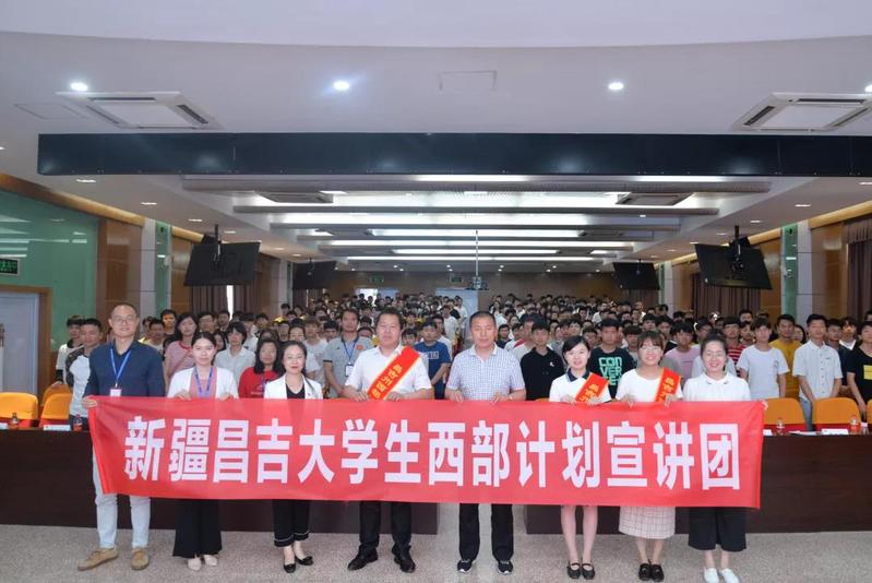 為做好2019年大學(xué)生志愿服務(wù)西部計(jì)劃的招募宣傳工作,大力引導(dǎo)和鼓勵(lì)高校畢業(yè)生到基層服務(wù),4月26日上午,2019年大學(xué)生志愿服務(wù)西部計(jì)劃新疆昌吉宣講團(tuán)來到我校,360多名同學(xué)在北區(qū)1號(hào)樓6樓學(xué)術(shù)報(bào)告廳參加宣講大會(huì)。大會(huì)由團(tuán)委副主記陳慧主持。
