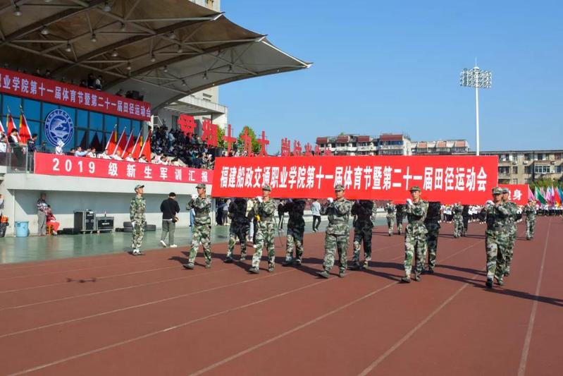 11月6日上午8時,福建船政交通職業(yè)學院2019級新生軍訓總結匯報暨第二十一屆校園運動會開幕式在校田徑場隆重舉行。