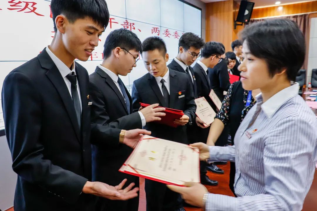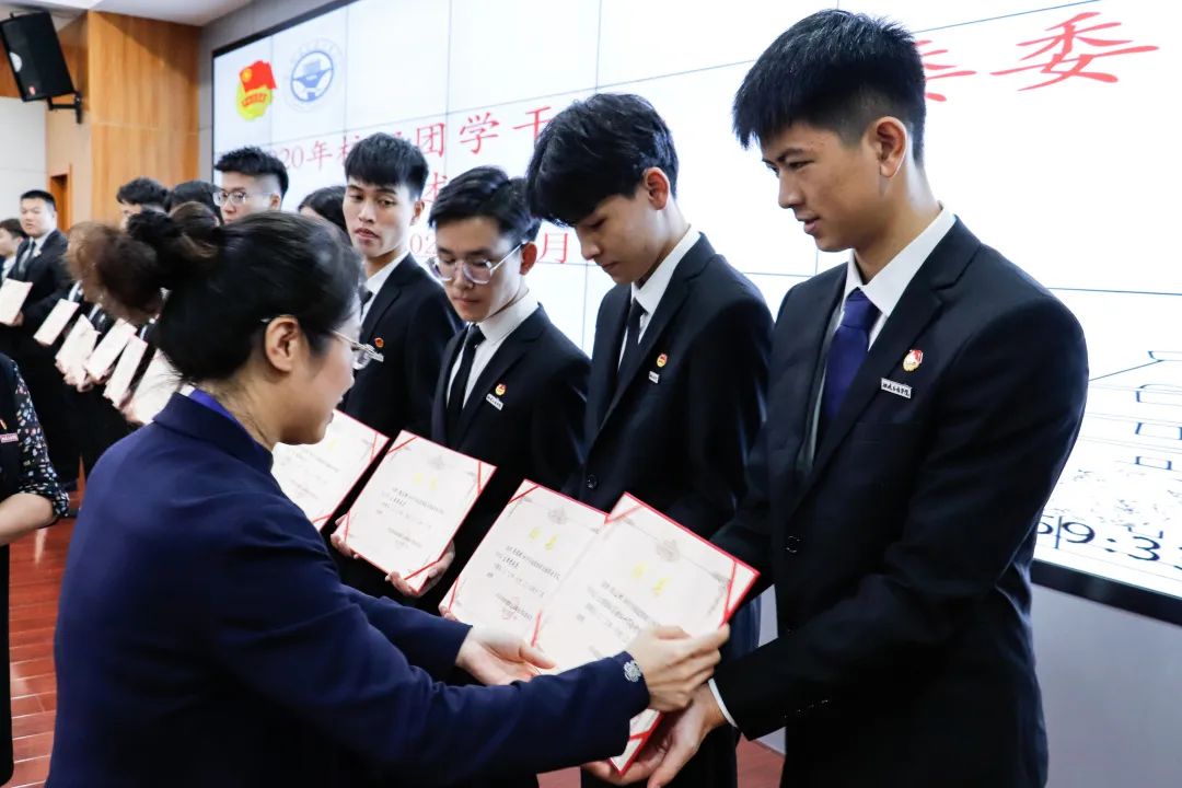 校團(tuán)委書記陳慧,副書記梁晶為團(tuán)學(xué)干部、兩委委員頒發(fā)了聘書。