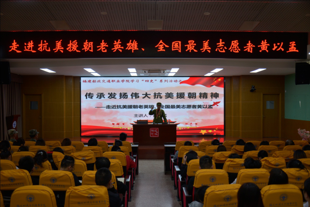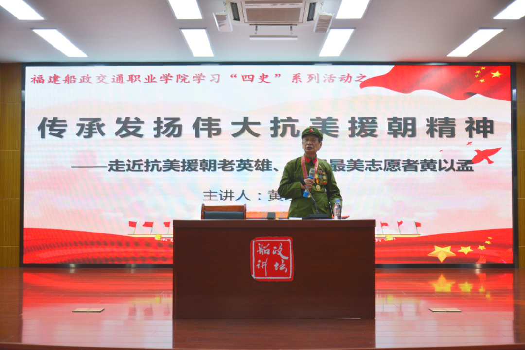 歷史是最好的“教科書”“營養(yǎng)劑”和“清醒劑”?!八氖贰睂W(xué)習(xí)教育是引領(lǐng)青年學(xué)生堅(jiān)定理想信念、矢志拼搏奮斗、砥礪奮進(jìn)社會(huì)主義現(xiàn)代化國家建設(shè)新征程的信仰之源和力量之泉。值此抗美援朝戰(zhàn)爭勝利70周年之際,11月3日下午,我校邀請抗美援朝老英雄、全國最美志愿者、89歲高齡的黃以孟老先生蒞臨學(xué)校開展《傳承發(fā)揚(yáng)偉大抗美援朝精神》專題報(bào)告會(huì)。