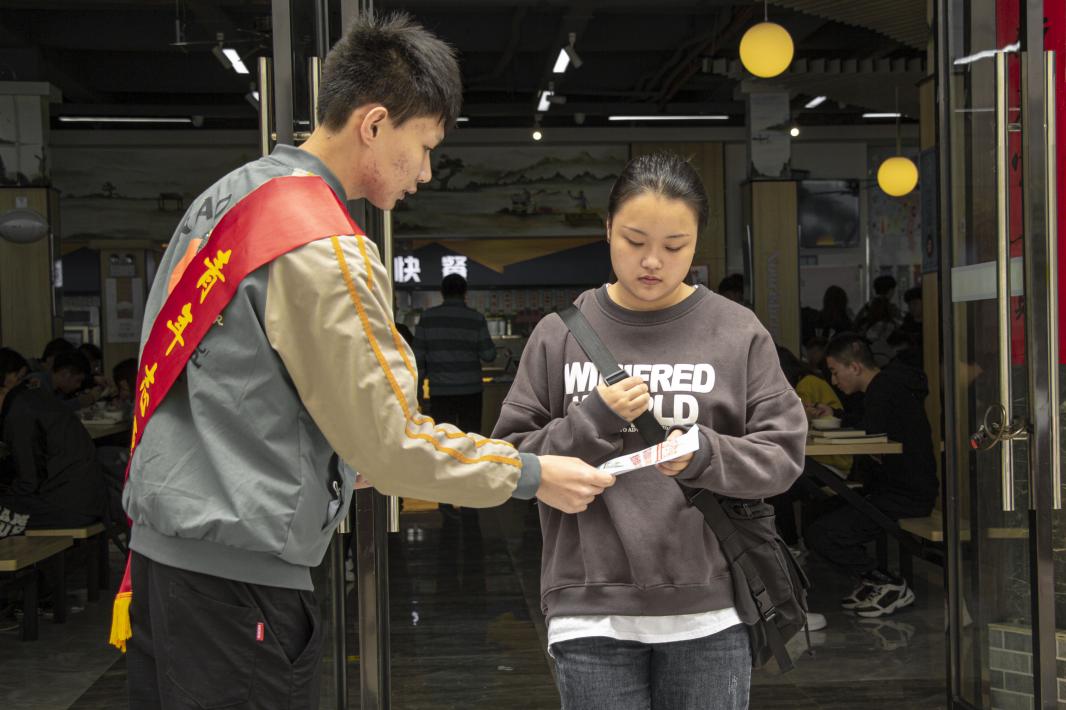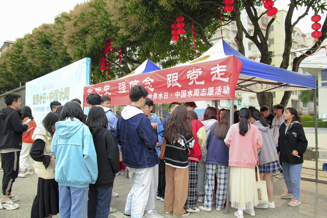 隨后,在學(xué)院北區(qū)也開展了“學(xué)黨史 強信念 跟黨走”水知識有獎競答、趣味節(jié)水小游戲等多個活動,參與互動的師生眾多,現(xiàn)場氣氛十分熱烈。同時,青年志愿者在校內(nèi)各食堂發(fā)放愛水護(hù)水知識傳單,向全院師生廣泛普及節(jié)水相關(guān)知識。