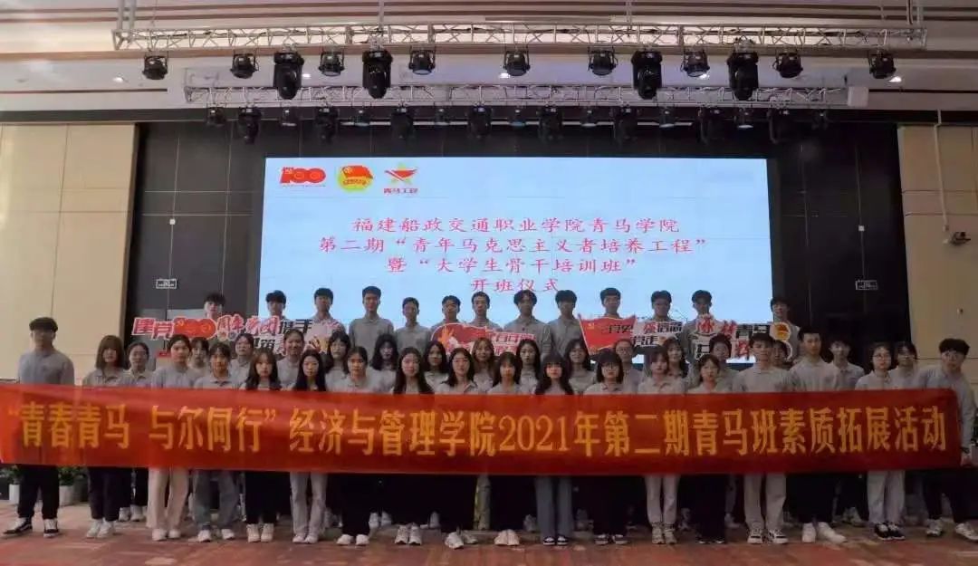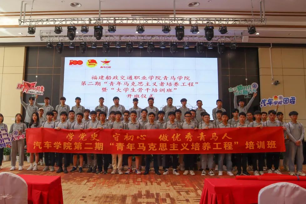 為深入學(xué)習(xí)貫徹習(xí)近平新時(shí)代中國特色社會(huì)主義思想和習(xí)近平總書記關(guān)于青年工作重要論述,貫徹落實(shí)《中長期青年發(fā)展規(guī)劃(2016—2025年)》和《關(guān)于深入實(shí)施青年馬克思主義者培養(yǎng)工程的意見》, 進(jìn)一步強(qiáng)化青年思想政治引領(lǐng),進(jìn)一步推動(dòng)“學(xué)黨史、強(qiáng)信念、跟黨走”學(xué)習(xí)教育活動(dòng)走深走實(shí),為黨培養(yǎng)和輸送更多信仰堅(jiān)定、能力突出、素質(zhì)優(yōu)良、作風(fēng)過硬的青年政治骨干,2021年5月1日,福建船政交通職業(yè)學(xué)院青馬學(xué)院第二期“青年馬克思主義者培養(yǎng)工程”暨“大學(xué)生骨干培訓(xùn)班”在我校武夷職教園正式開班。
