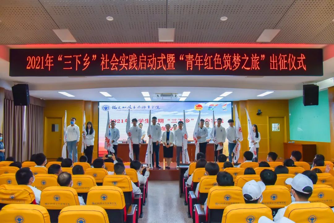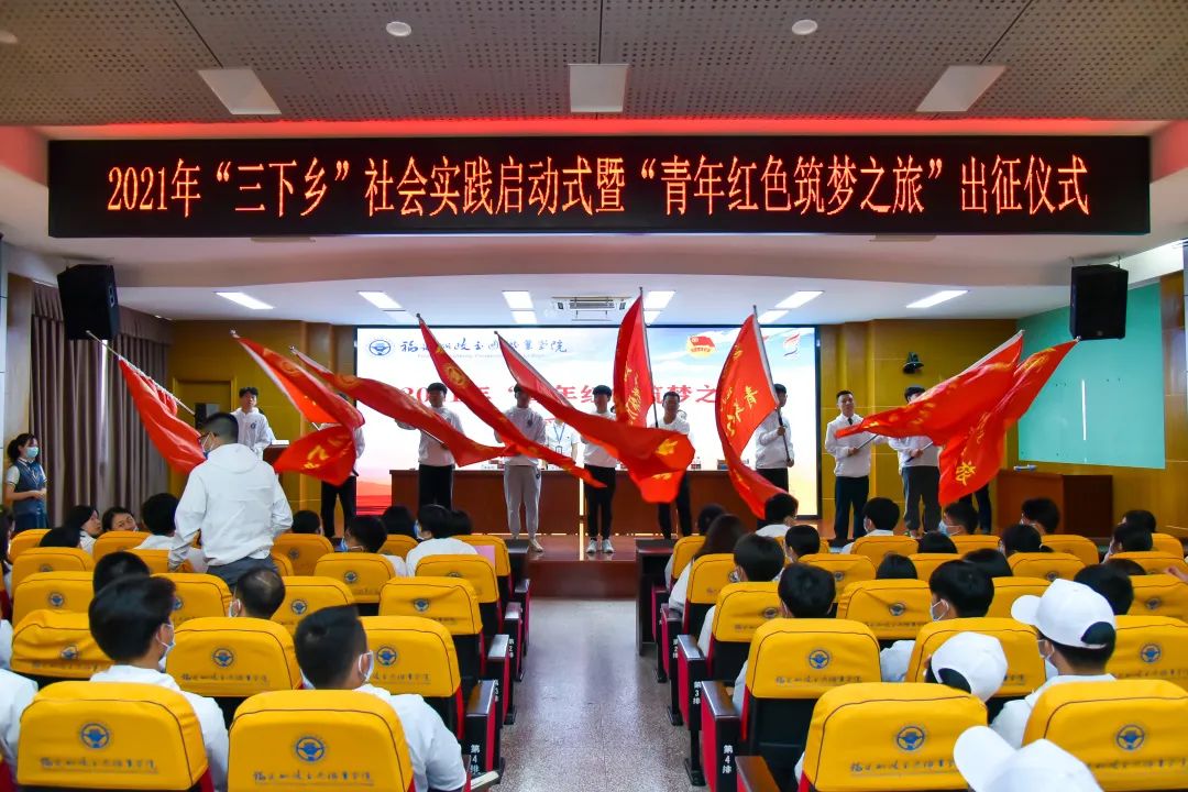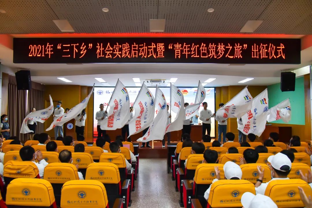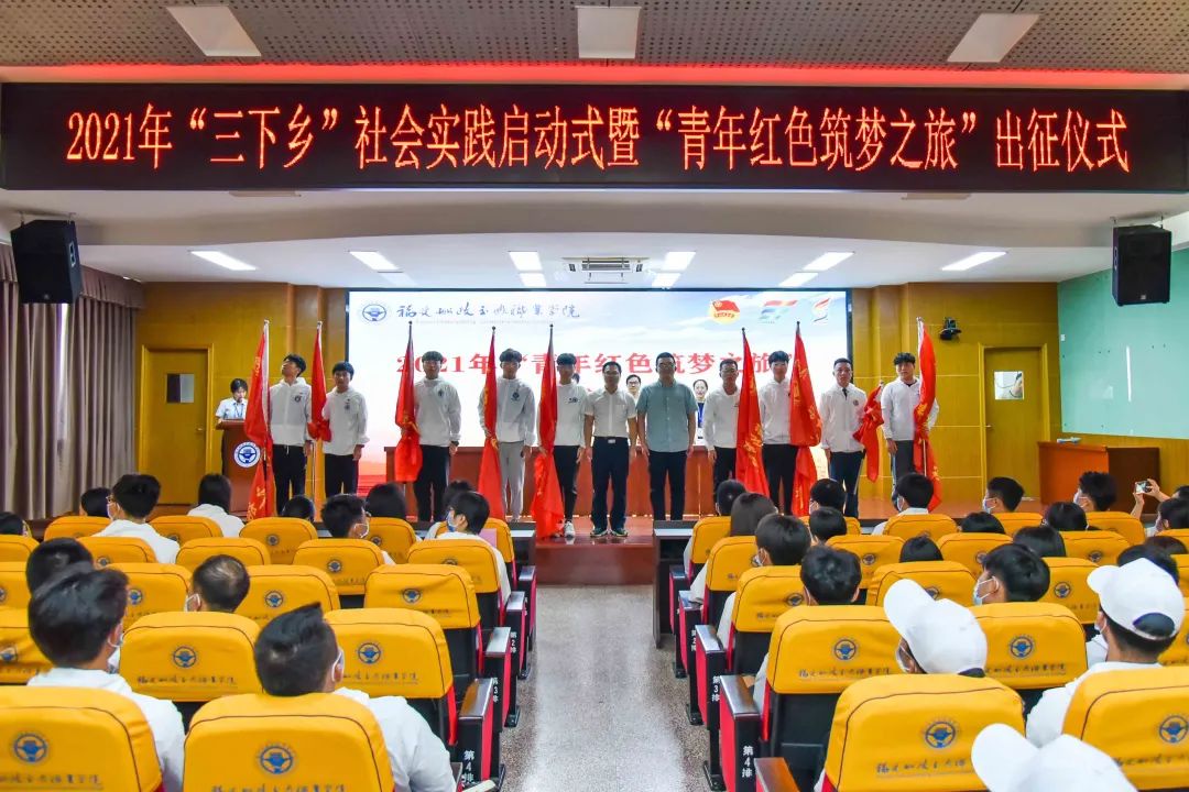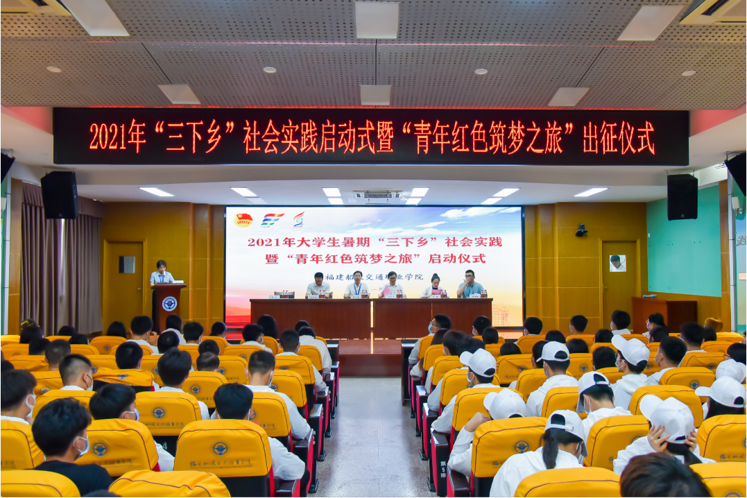 為慶祝中國(guó)共產(chǎn)黨成立100周年,落實(shí)共青團(tuán)中央《關(guān)于開(kāi)展2021年全國(guó)大中專學(xué)生志愿者暑期文化科技衛(wèi)生“三下鄉(xiāng)”社會(huì)實(shí)踐活動(dòng)的通知》要求,6月30日下午,福建船政交通職業(yè)學(xué)院2021年大學(xué)生暑期“三下鄉(xiāng)”社會(huì)實(shí)踐暨“青年紅色筑夢(mèng)之旅”活動(dòng)啟動(dòng)儀式在我院北區(qū)1號(hào)樓六樓學(xué)術(shù)報(bào)告廳舉行。學(xué)院黨委副書記陳宜大,相關(guān)部門負(fù)責(zé)人,以及今年參加大學(xué)生暑期“三下鄉(xiāng)”社會(huì)實(shí)踐、青年紅色筑夢(mèng)之旅的師生代表等200余人參加了本次會(huì)議。會(huì)議由學(xué)院團(tuán)委副書記梁晶主持。