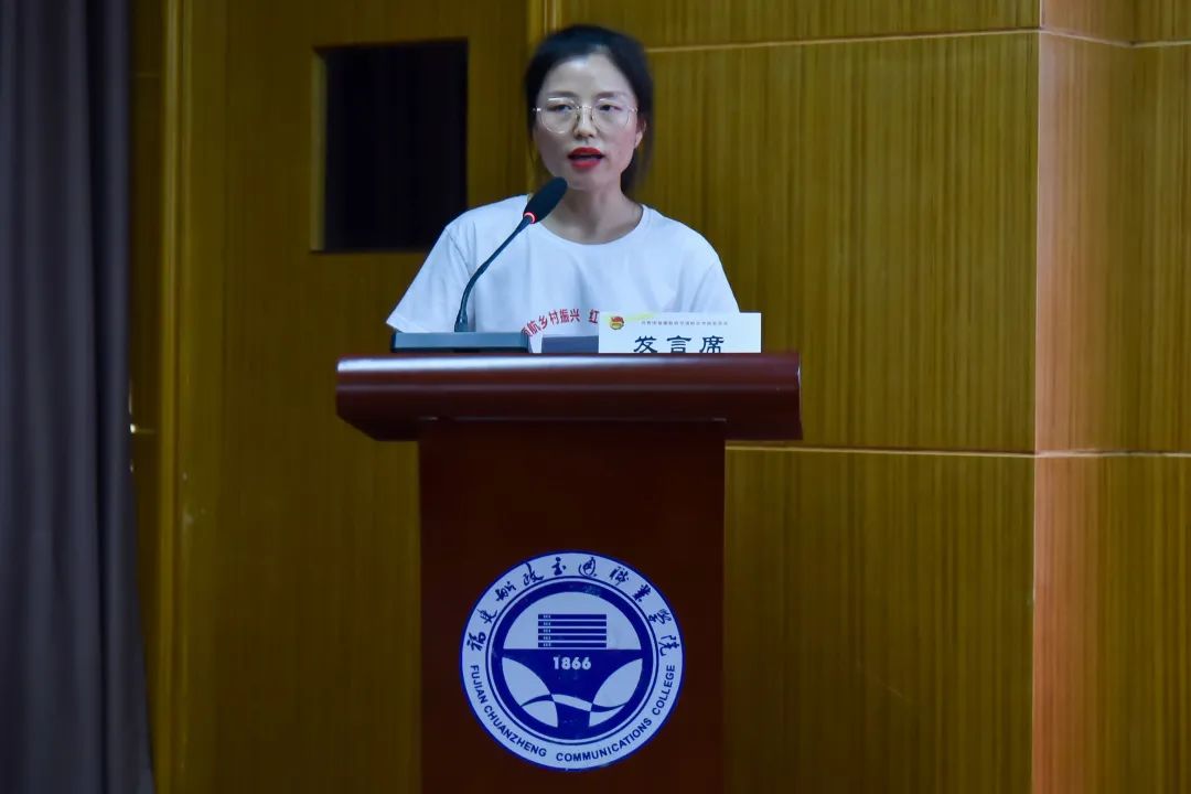 學(xué)院團(tuán)委書記陳慧為2021年大學(xué)生暑期“三下鄉(xiāng)”社會(huì)實(shí)踐活動(dòng)代表授旗。