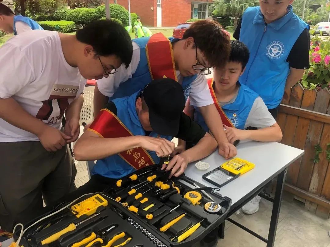 為幫助同學(xué)們解決家用電器使用過程中遇到的問題,讓同學(xué)們生活舒心滿意,校學(xué)生會組織志愿者服務(wù)隊(duì)開展家電維修服務(wù)。志愿者們積極運(yùn)用自身所學(xué)的專業(yè)知識,將扎實(shí)的專業(yè)理論知識轉(zhuǎn)化為成功的現(xiàn)場實(shí)踐,幫同學(xué)們的電腦進(jìn)行清理和維護(hù),向同學(xué)們宣傳電腦維護(hù)小知識,幫同學(xué)們獻(xiàn)上“電腦小貼士”;幫助師生們維修故障的電風(fēng)扇、熱水壺、洗衣機(jī)等常用家電,向師生們宣傳普及常用家電的正確使用及維護(hù)方法并進(jìn)行解難答疑,使“故障”家電煥然一新。