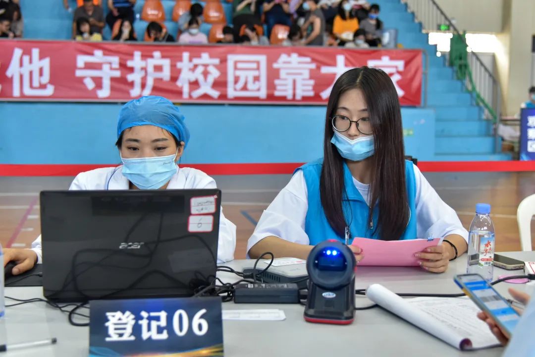 檢查接種信息、引導(dǎo)學(xué)生入座接種疫苗、協(xié)助醫(yī)生接種、連續(xù)好幾個(gè)小時(shí)的工作,志愿者們也精神飽滿、甘之如飴,為師生辦好事,辦實(shí)事,就是他們最開心的事。