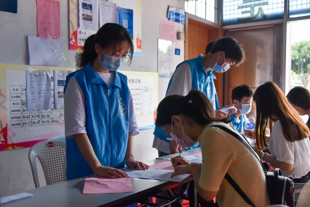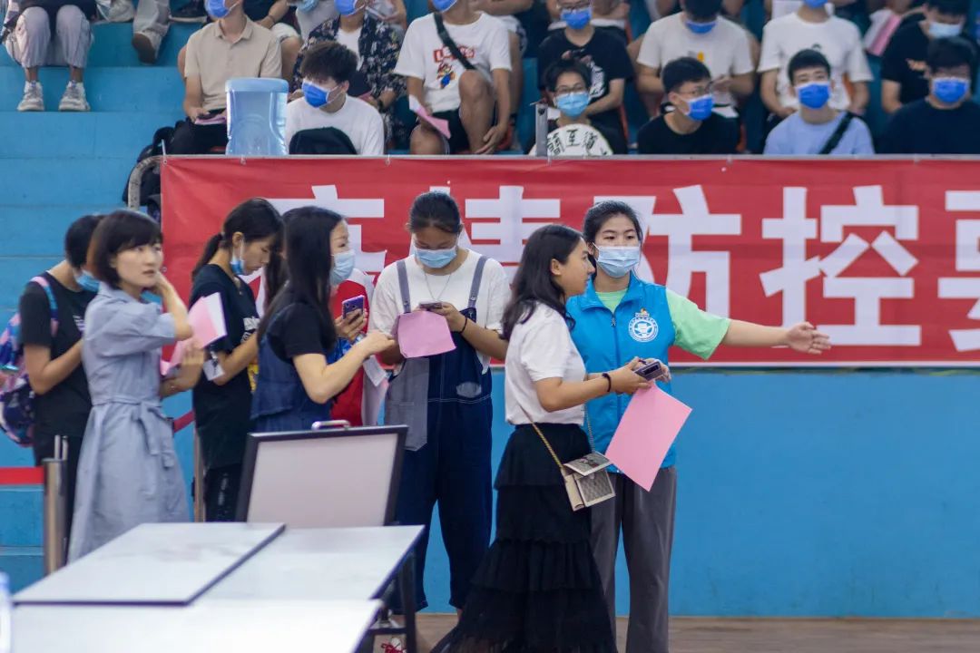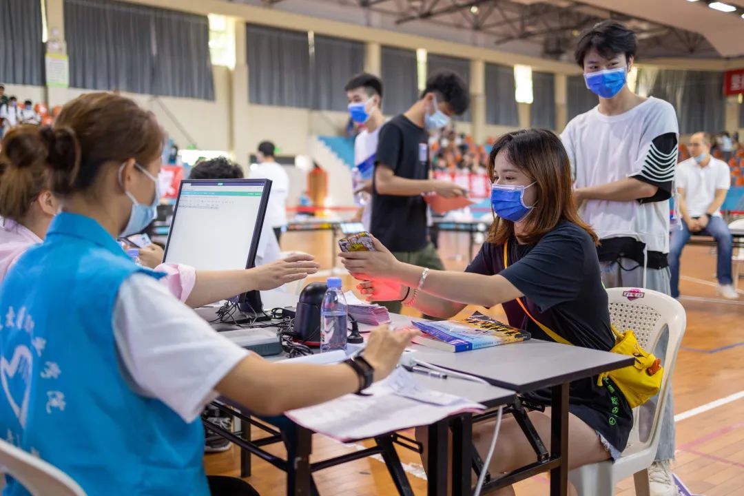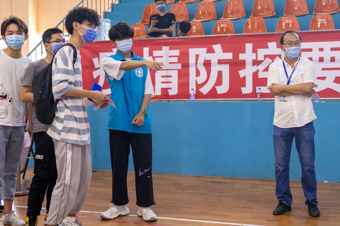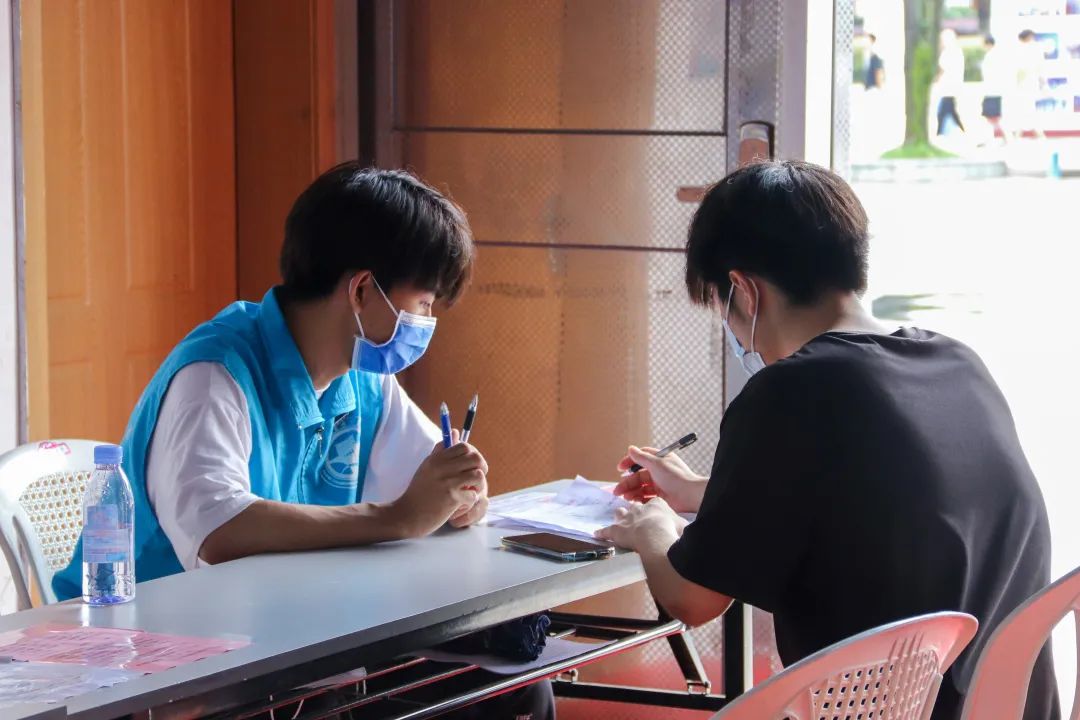 志愿者提醒師生出示接種預(yù)約登記信息,協(xié)助填寫登記單、維護(hù)現(xiàn)場(chǎng)秩序、耐心解答師生們對(duì)于接種新冠疫苗流程的疑問,為疫苗接種工作把好第一道“關(guān)口”。
