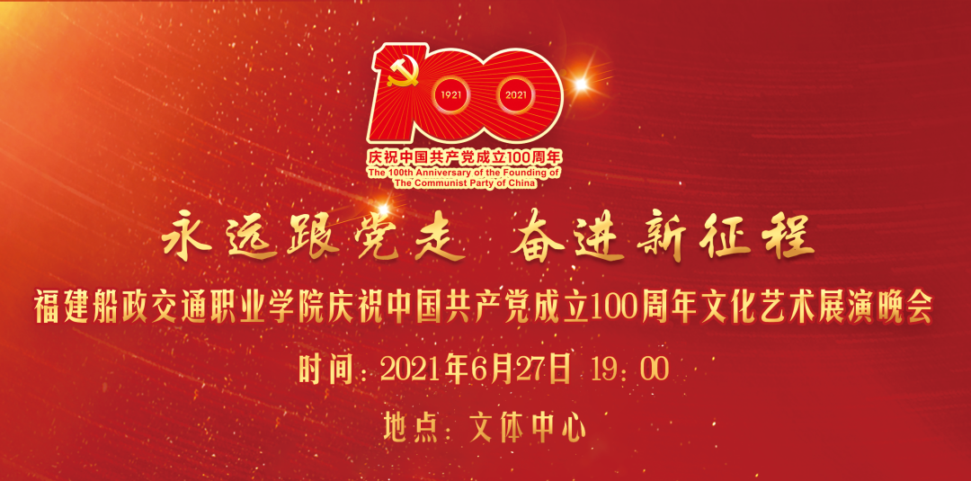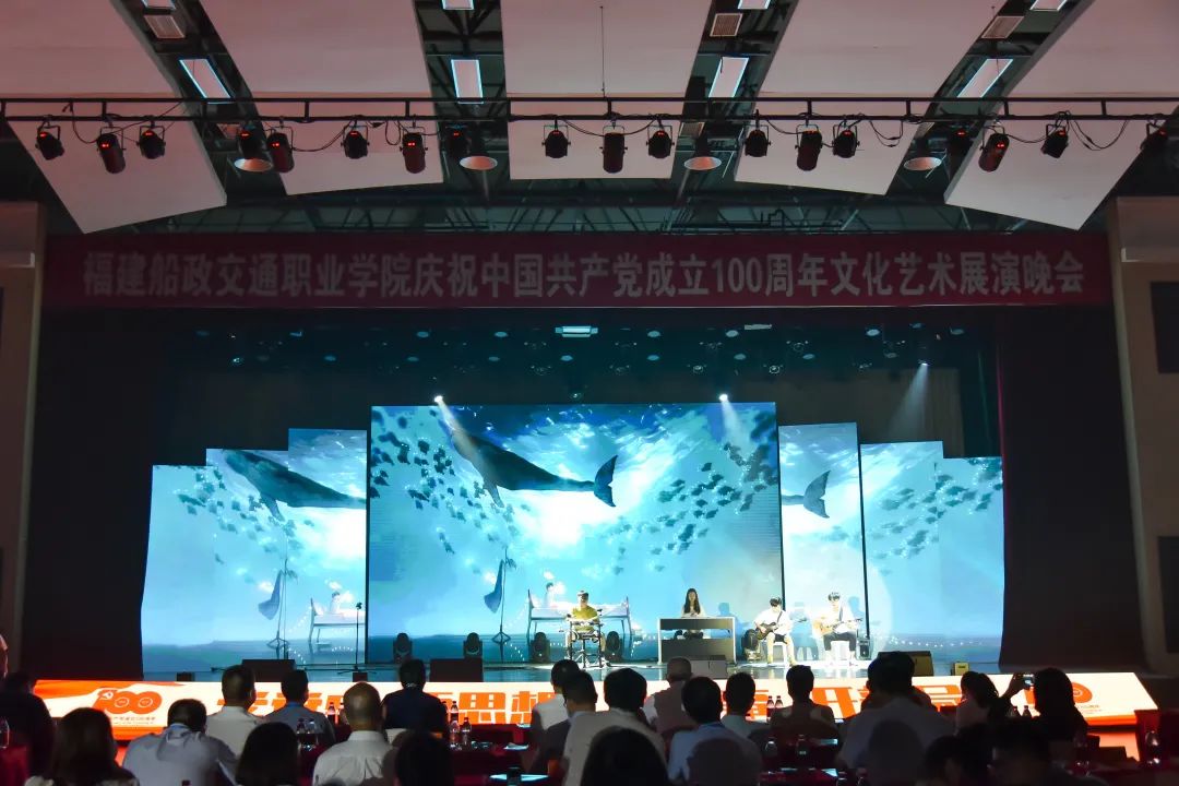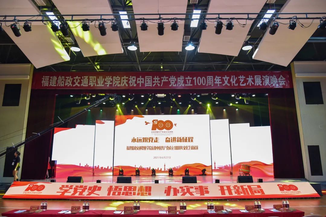 2021年6月27日晚19:00,“永遠跟黨走 奮進新征程”福建船政交通職業(yè)學院慶祝中國共產黨成立100周年文化藝術展演晚會在學院北區(qū)文體中心順利舉辦,學院黨委書記張海明,學院黨委副書記、院長陳錦輝,學院黨委副書記陳宜大,學院紀委書記張輝,學院副院長高汝武、張祖柱、陳艷紅,學院所有職能部門負責人和二級學院黨政負責人,閩清職專、合作企業(yè)、共建單位代表,學院師生等500余名參加并觀看了本次晚會。本次晚會采用線上線下同步觀看,線上觀看人次達到8.23萬。