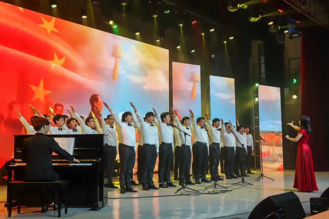 飛揚的歌聲,吟唱難忘的歷史,激昂的旋律,詮釋光明的未來。晚會在《沒有共產黨就沒有新中國》慷慨激昂的合唱聲中結束。