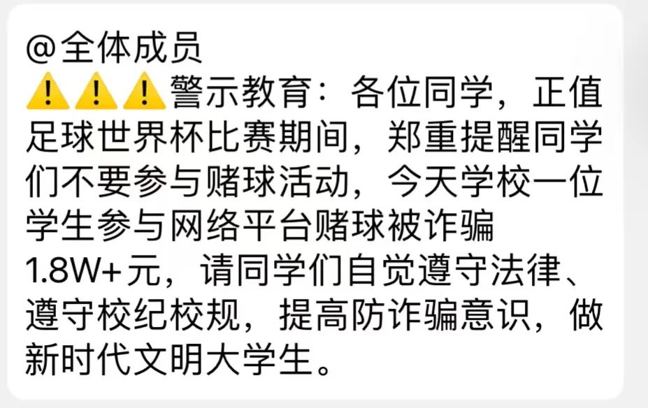 2022年卡塔爾世界杯大幕已經(jīng)拉開,許多球迷的熱情已經(jīng)點(diǎn)燃。在廣大球迷們準(zhǔn)備啤酒和烤串歡樂看球的同時,也給不法分子帶來了一場“蓄謀已久”的“賭球”狂歡,誘惑著人們跳進(jìn)深淵。不法分子借助微信、微博、抖音等網(wǎng)絡(luò)平臺進(jìn)行隱秘推廣,引誘受害人登錄博彩網(wǎng)站或下載賭球博彩“APP”進(jìn)行充值下注,當(dāng)充值金額達(dá)到一定數(shù)額后無法提現(xiàn)進(jìn)而被騙。此外,此類詐騙案件還具有受騙人員分布廣、財產(chǎn)損失大等特點(diǎn),因犯罪團(tuán)伙多集中在境外,案件偵辦難度也相對較大。大家一定要注意防范,避免世界杯變成“世界悲”。