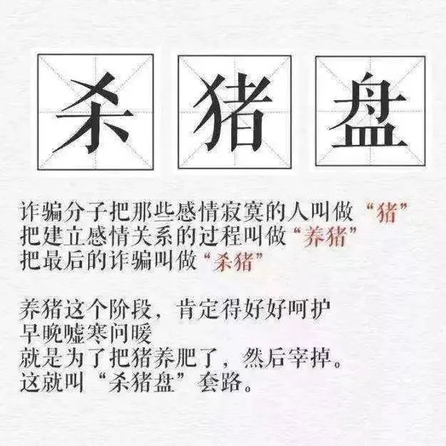 “千里姻緣一線牽,珍惜網(wǎng)絡(luò)這段緣”。如今,互聯(lián)網(wǎng)社交平臺玩法多樣,極易上手。但在拓寬年輕人交友范圍的同時,也帶來了一定風(fēng)險。不少詐騙分子隱匿其中,偽裝成“高富帥”“白富美”,以甜言蜜語、噓寒問暖博取好感信任,再虛構(gòu)美好富足生活的“大餅”,為推薦“穩(wěn)賺不賠”的理財軟件埋下伏筆。這就是“殺豬盤”詐騙,請小伙伴們擦亮眼睛,切莫等到傾家蕩產(chǎn)、負(fù)債累累時才覺醒。