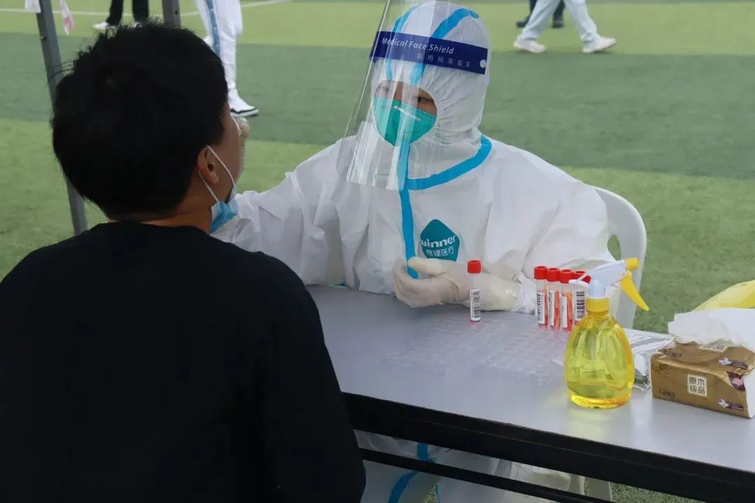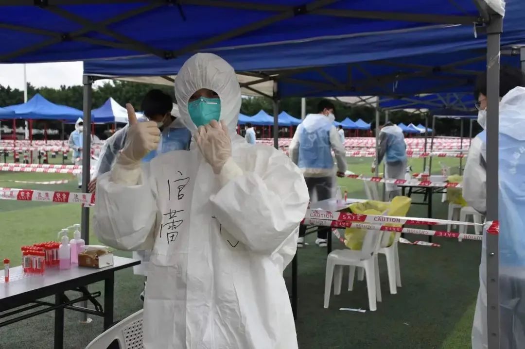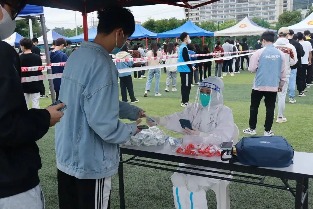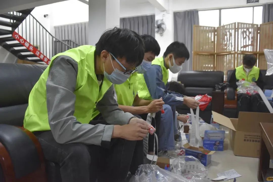 志愿者們?yōu)閷W(xué)校防疫工作中