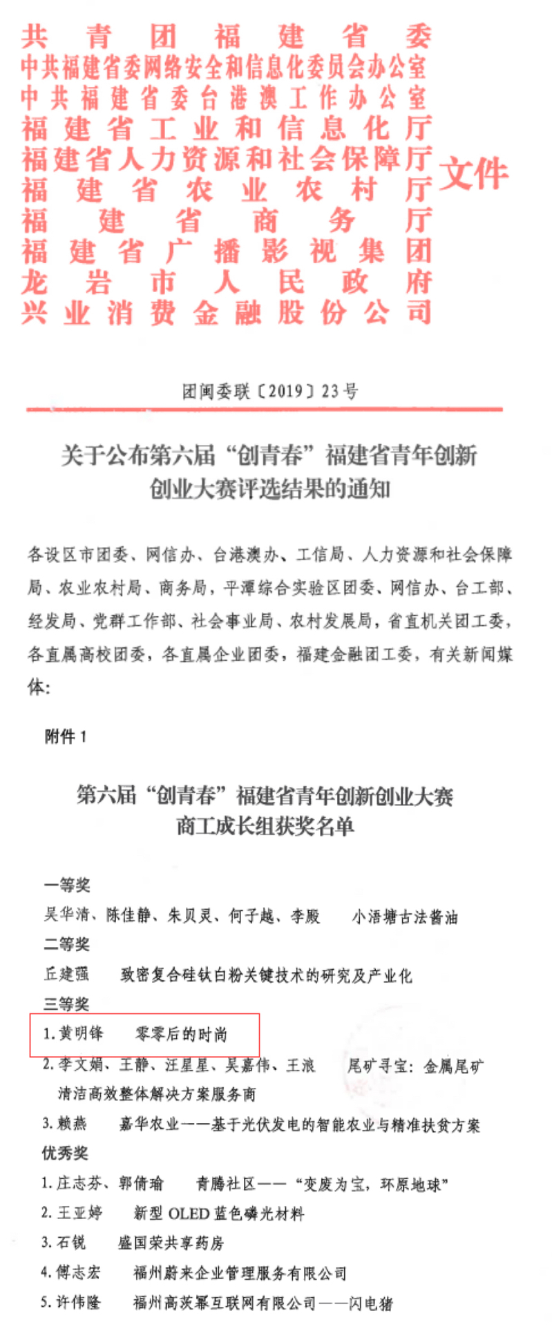 “創(chuàng)青春”第六屆福建省青年創(chuàng)新創(chuàng)業(yè)大賽商工成長組三等獎