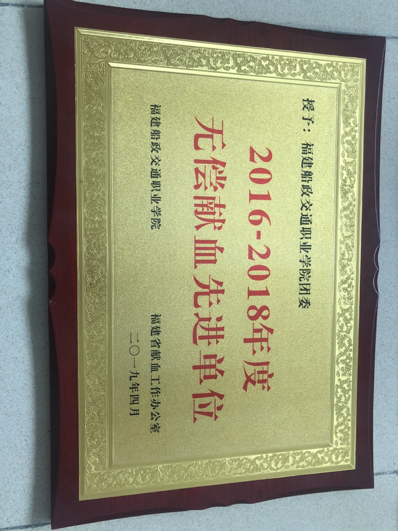 福建船政交通職業(yè)學(xué)院團(tuán)委為2016-2018年度無償獻(xiàn)血先進(jìn)單位