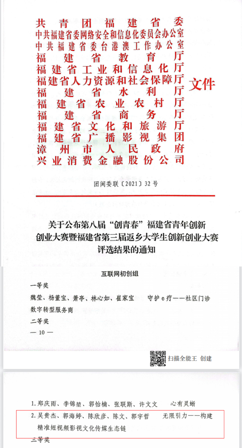 第八屆“創(chuàng)青春”福建省青年創(chuàng)新創(chuàng)業(yè)大賽暨福建省第三屆返鄉(xiāng)大學(xué)生創(chuàng)新創(chuàng)業(yè)大賽互聯(lián)網(wǎng)初創(chuàng)組二等獎