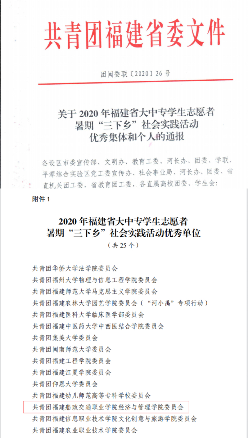 2020年福建省大中專學生志愿者暑期“三下鄉(xiāng)”社會實踐活動優(yōu)秀單位