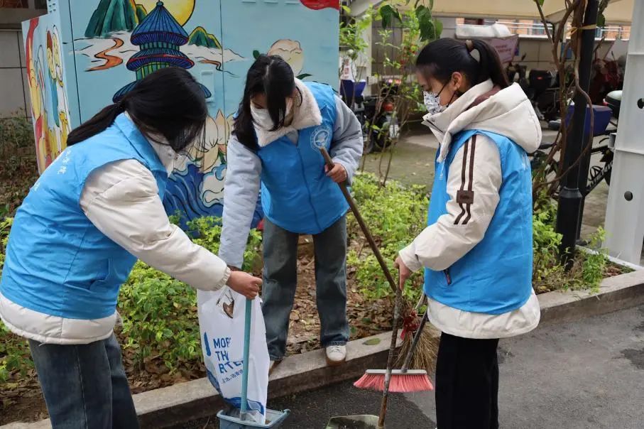 在社區(qū)里,隨處可見身著藍(lán)馬甲的志愿者身影,他們紛紛化身“環(huán)境美容師”,擼起袖子,默契配合,清掃路面落葉、拾撿白色垃圾。青年志愿者們用他們的雙手,用他們的汗水,給居民們營造了更和諧,更干凈的社區(qū)。