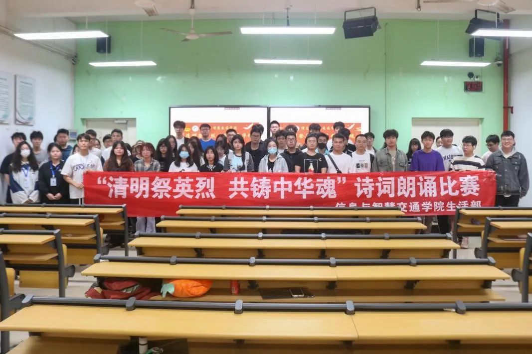 為宣揚(yáng)中華優(yōu)秀傳統(tǒng)節(jié)日文化,讓同學(xué)們更深入的了解清明節(jié)所承載的文化內(nèi)涵與民族情懷。信息與智慧交通學(xué)院于4月11日晚在福道園自強(qiáng)樓1-4開展“清明祭英烈,共鑄中華魂”詩詞朗誦比賽活動。