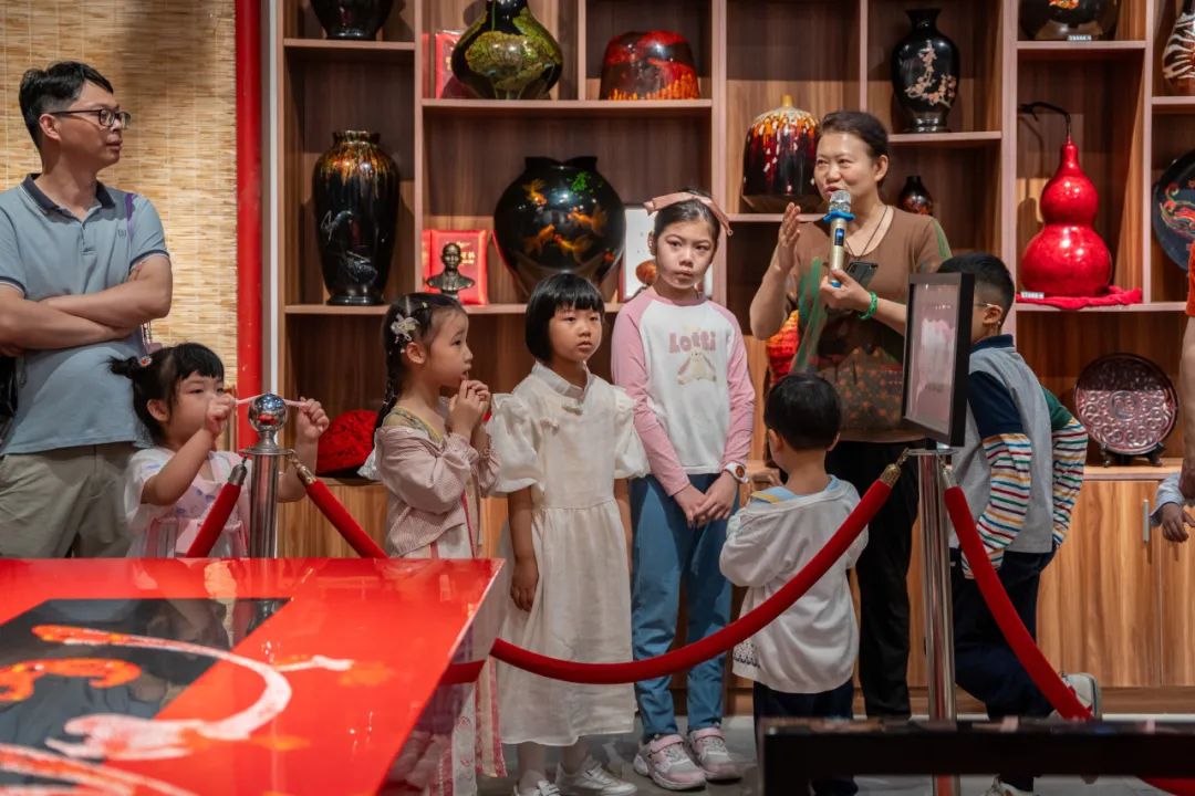 值此“六一”國際兒童節(jié)之際,為更好服務(wù)教職工,關(guān)愛教職工家庭,我校在周末兩天,開展“福游上下杭 童享非遺之樂”“六一”教職工親子活動。48個教職工家庭走進(jìn)上下杭大有齋,在我校“非遺”大師工作室聘任的福州脫胎漆藝非遺大師們的講解下,了解了脫胎漆器復(fù)雜的制作工藝,體驗了漆珠和漆扇的制作,度過不一樣的“六一”國際兒童節(jié)。