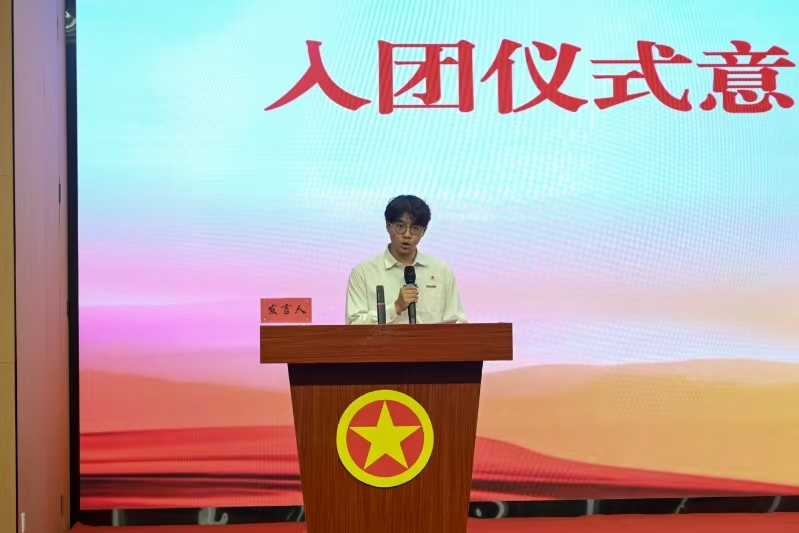 機(jī)械與智能制造學(xué)院新團(tuán)員王晨同學(xué),代表第一批新團(tuán)員發(fā)言,他表示,將以團(tuán)員標(biāo)準(zhǔn)律己,勤學(xué)奮進(jìn),對標(biāo)前輩,展現(xiàn)青春風(fēng)采。