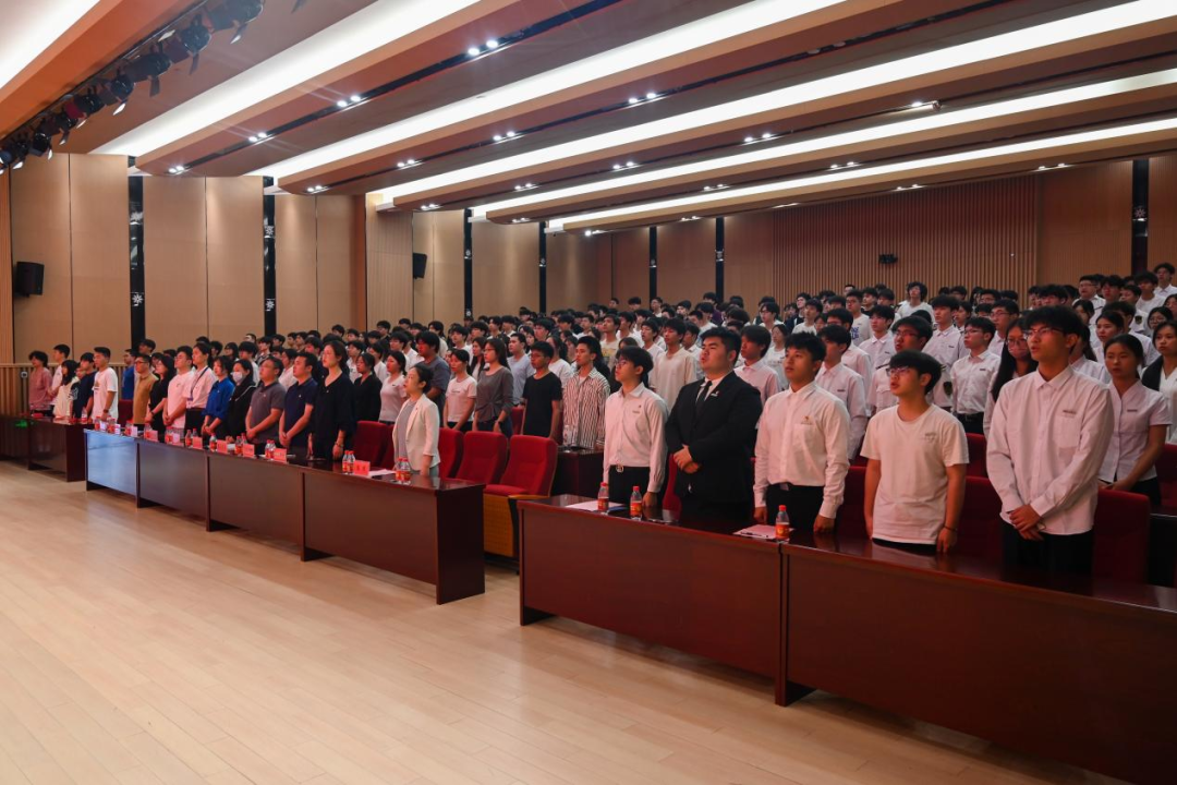 在學(xué)院團(tuán)委學(xué)生兼職副書記夏昊城同學(xué)的領(lǐng)誓下,新團(tuán)員們高舉右拳莊嚴(yán)宣誓,錚錚誓言在會場回蕩。這誓言將化作前行動力,激勵新團(tuán)員們不忘初心,踐行承諾。