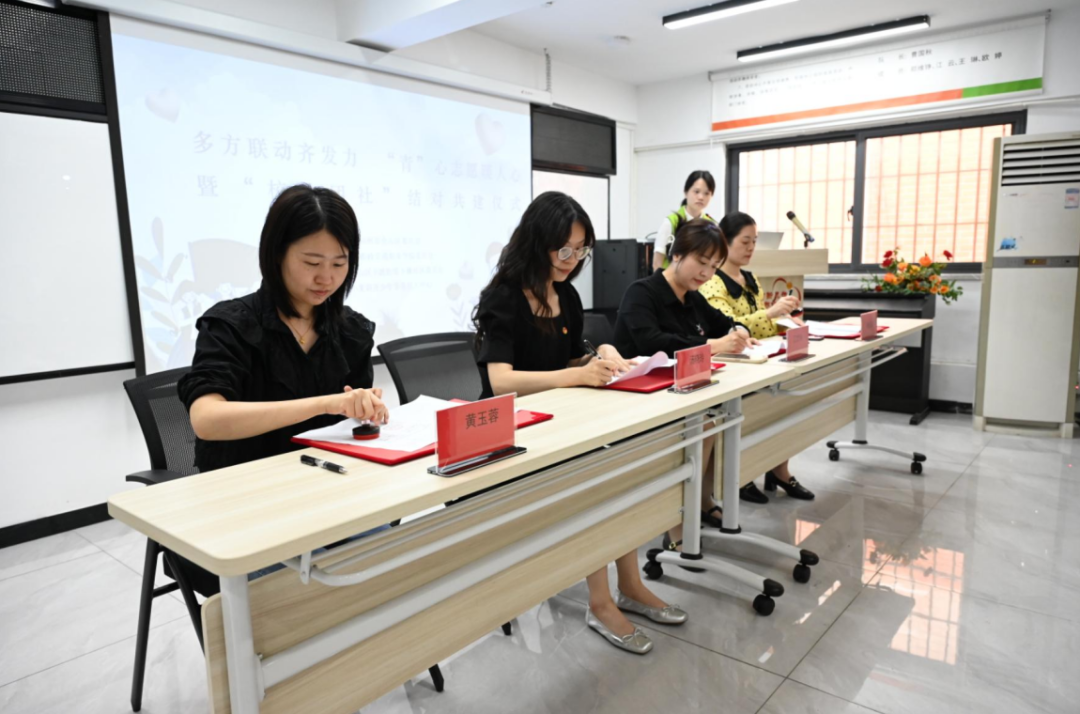 隨后,學(xué)院團(tuán)委與共青團(tuán)福州市倉山區(qū)委員會(huì)、下渡街道下藤社區(qū)、倉山區(qū)小茉莉青少年事務(wù)社工中心共同簽署了“校地團(tuán)社”共建協(xié)議。