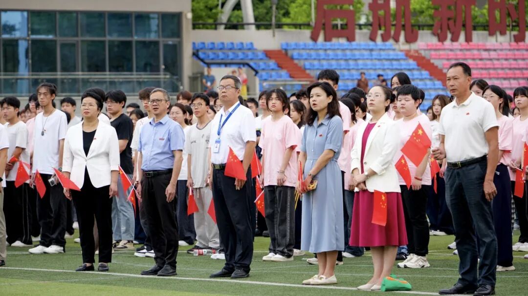 校國(guó)旗護(hù)衛(wèi)隊(duì)邁著鏗鏘堅(jiān)定的步伐昂首前行,每一步都飽含赤誠(chéng);鮮艷的五星紅旗在朝陽(yáng)映照下,于師生的肅立注目中冉冉升起、迎風(fēng)展揚(yáng)。嘹亮國(guó)歌回蕩校園,師生目光緊緊追隨著國(guó)旗,“青春向黨,強(qiáng)國(guó)有我” 的信念,在這莊嚴(yán)時(shí)刻深深鐫刻心間。
