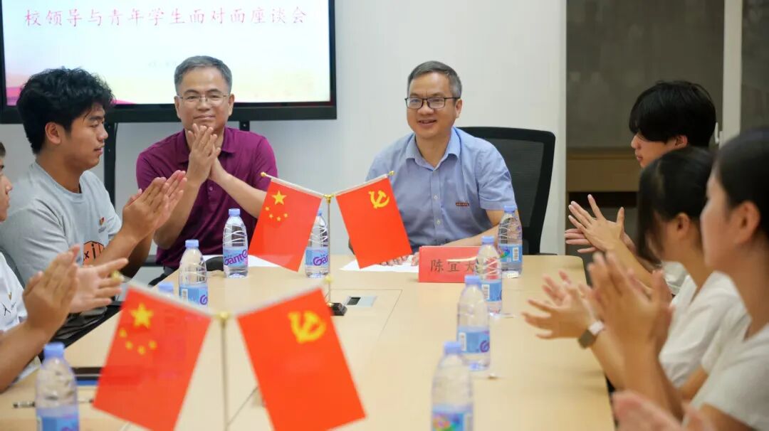 在青年之家,同學(xué)們圍繞專業(yè)發(fā)展、擇業(yè)方向、個人規(guī)劃及校園生活等話題踴躍發(fā)言;學(xué)院黨委副書記張輝與學(xué)院團(tuán)委書記陳慧認(rèn)真傾聽,對同學(xué)們提出的困惑逐一進(jìn)行詳細(xì)解答并開展深入交流。座談會上,張輝副書記與師生們共同為新中國成立76周年慶生,師生們高聲祝?!白鎳湛鞓贰保F(xiàn)場氣氛高漲,溫馨的一幕為座談會畫上了圓滿的句號。