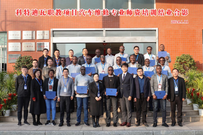 近日,我院舉辦科特迪瓦職教項目汽車維修專業(yè)師資培訓結業(yè)典禮??铺氐贤呗毥添椖慷綄W科菲·古阿古·荷內,學院黨委委員、副院長陳艷紅,中航國際成套設備有限公司業(yè)務四部經(jīng)理助理張航出席典禮,學院教務處、科技處、對外交流中心及汽車學院等部門負責人參加典禮。