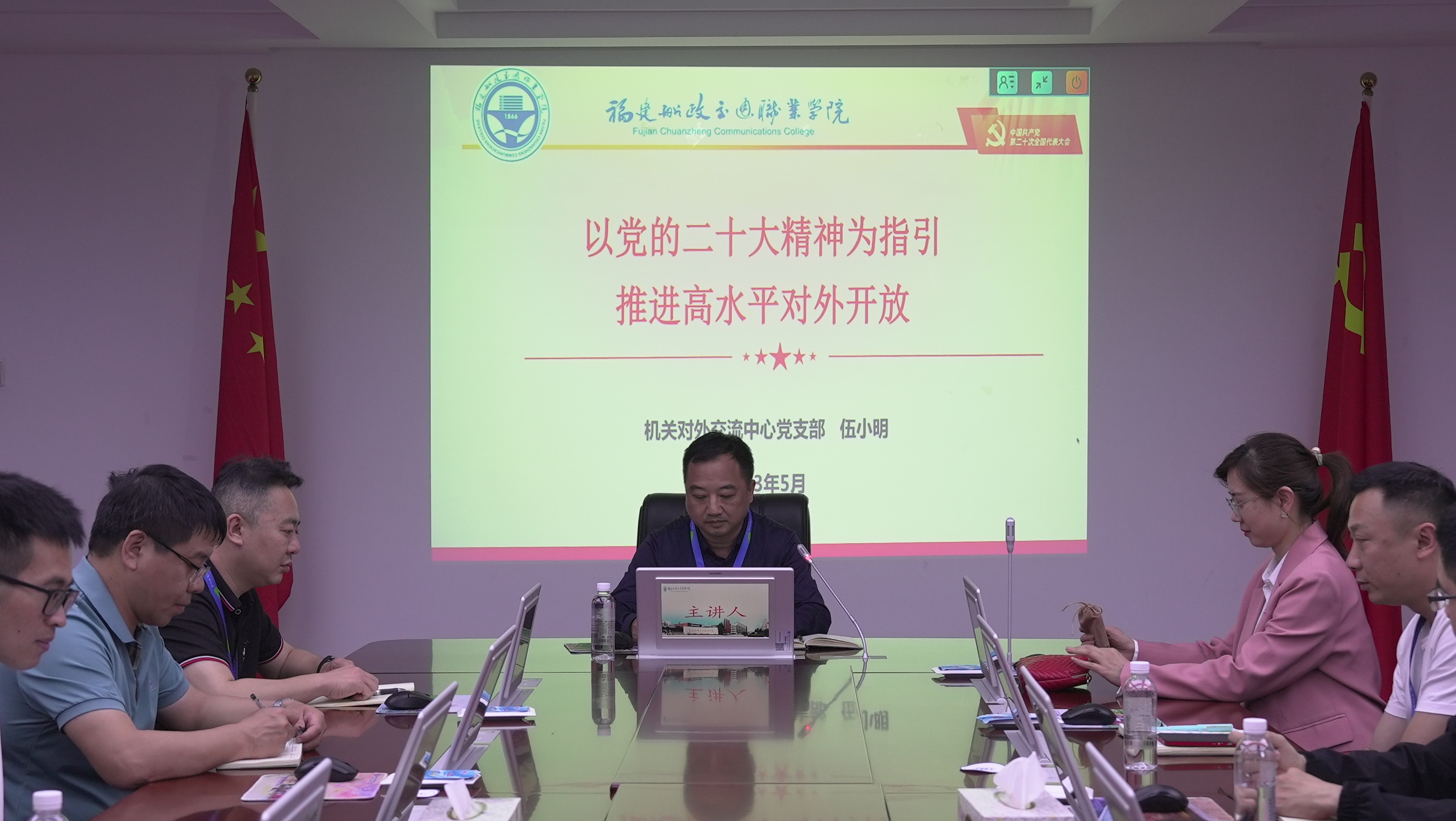 為深入學(xué)習(xí)貫徹黨的二十大精神,深刻領(lǐng)會(huì)、全面把握黨的二十大精神的重大意義和重大部署,切實(shí)用黨的二十大精神武裝頭腦、指導(dǎo)實(shí)踐,5月24日下午,對(duì)外交流中心黨支部書(shū)記伍小明講授學(xué)習(xí)宣傳貫徹黨的二十大精神專題黨課,支部全體黨員聆聽(tīng)黨課。