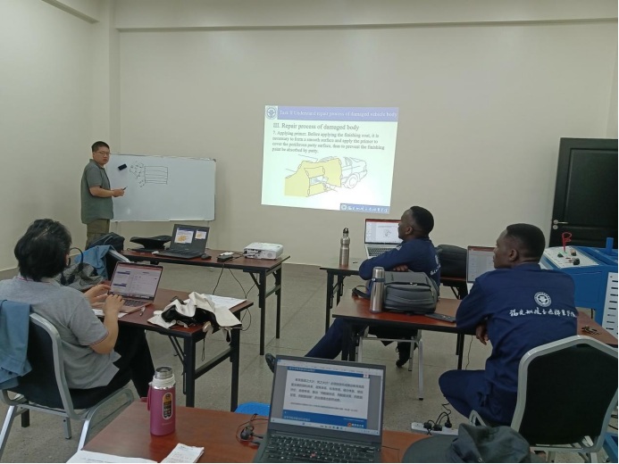 2024年6至11月,學(xué)院職教出海選派的優(yōu)秀師資團隊黃林火、張宇峰兩位教師再次啟程,跨越萬里,從福建到非洲大陸,他們揚帆出海,乘勢而上,持續(xù)向世界輸送“船政模式”職業(yè)教育品牌,圓滿完成了為期半年的烏干達(dá)汽車專業(yè)骨干師資培訓(xùn)。團隊因“國”制宜,制定適應(yīng)當(dāng)?shù)卦盒P枰钠噷I(yè)建設(shè)標(biāo)準(zhǔn)、實驗實訓(xùn)條件建設(shè)標(biāo)準(zhǔn),精心設(shè)計汽車發(fā)動機構(gòu)造與維修、汽車底盤構(gòu)造與維修、汽車電氣設(shè)備構(gòu)造與維修等9門課程標(biāo)準(zhǔn),并高質(zhì)量完成680課時的汽車技術(shù)培訓(xùn),輸出了一套國際化汽車維修專業(yè)職業(yè)教育標(biāo)準(zhǔn)。