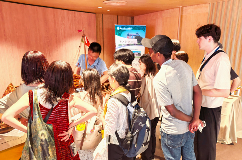 展位現(xiàn)場(chǎng),精巧的福船模型、精湛的傳統(tǒng)技藝演示與豐富的圖文影像資料相得益彰,生動(dòng)還原了水密隔艙這一古老造船智慧的奧秘,迅速吸引各國(guó)游客、參展方代表及媒體駐足關(guān)注。我院教師熱情接待每一位參觀者,細(xì)致講解福船的歷史淵源與文化價(jià)值,還通過互動(dòng)演示工藝環(huán)節(jié),讓國(guó)際觀眾沉浸式感受中華優(yōu)秀非物質(zhì)文化遺產(chǎn)的獨(dú)特風(fēng)采。